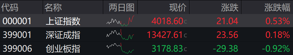 沪指高开0.11%,深成指高开0.37%,创业板指高开0.43%。